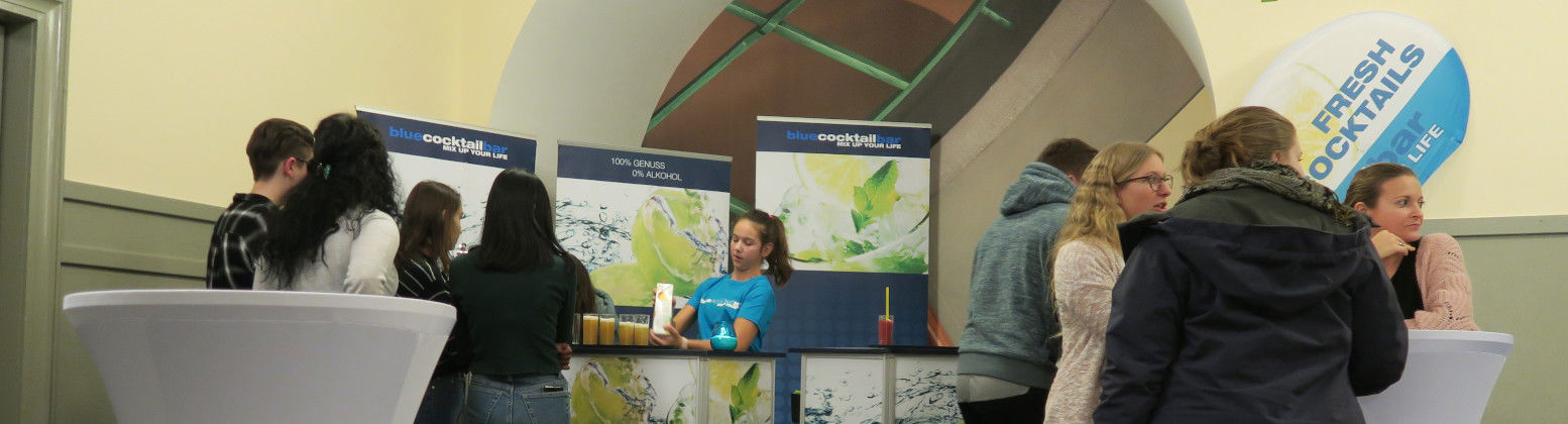 Wir sind mit unserer mobilen alkoholfreien Blue Cocktail Bar sowohl an öffentlichen wie auch an privaten Anlässen präsent: Festivals, Konzerte, Sportevents, Jubiläumsfeiern, Geschäfts- und Hochzeitsapéros, Geburtstagsfeste, Firmenanlässe etc. Vom Drinksortiment über die Drinkgrösse bis zum Auftreten entsprechen wir gerne Ihren Wünschen! Fachgerechtes Barhandling und Mixen von innovativen Drinkkreationen ermöglichen ein neues Geschmacks- und Trinkerlebnis. Die Einhaltung hoher Qualitätsstandards ist für uns selbstverständlich.